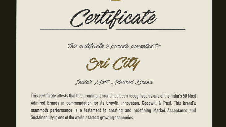 Sri City wins Asia’s ‘Most Admired Brand’ Award